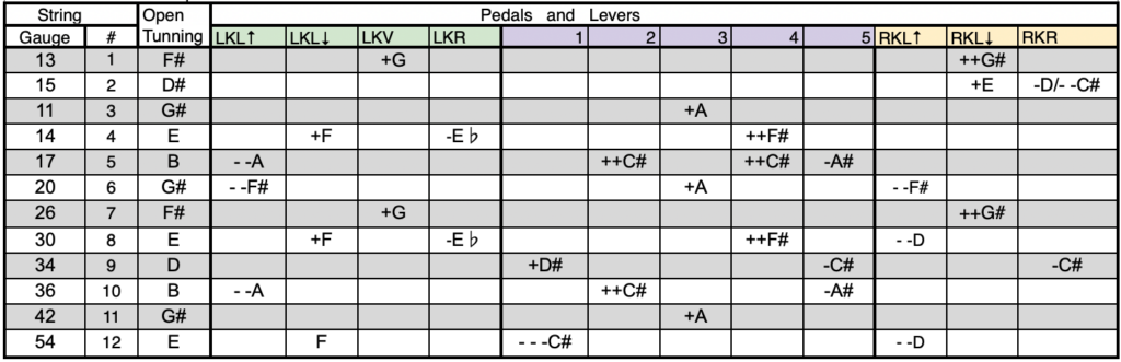This guitar features a Greg Leisz–inspired copedent with two staggered sets of knee levers.